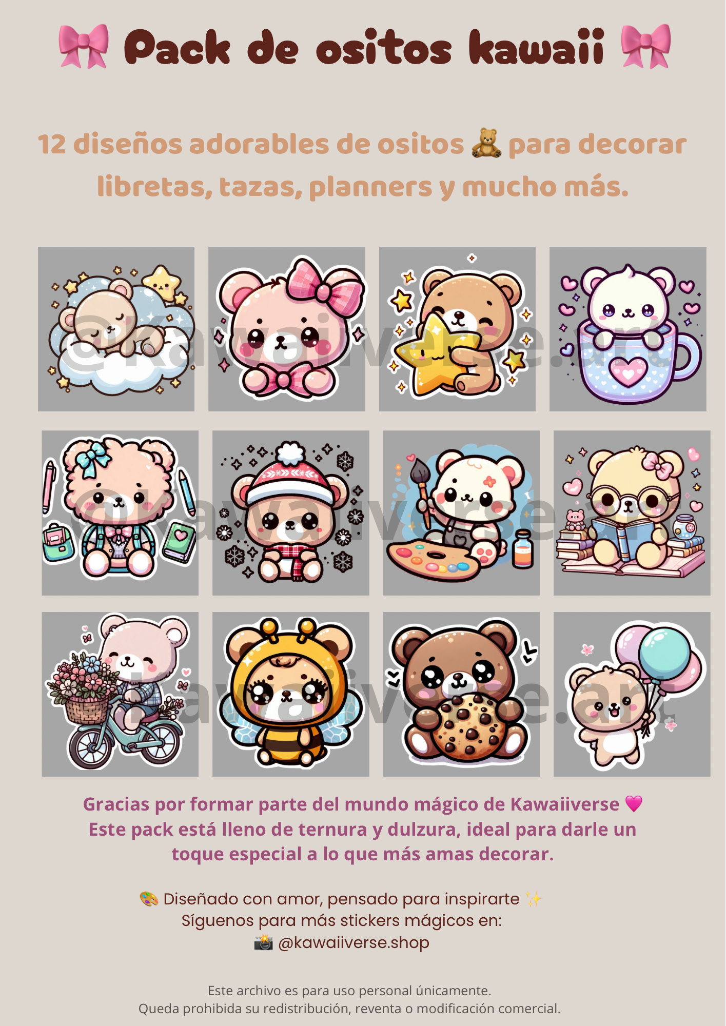 Estos dulces ositos están llenos de magia, sueños y ternura. Los verás flotando en nubes, pintando con amor, abrazando galletas y jugando con globos. Cada sticker fue creado para llenar de alegría y dulzura tu mundo.